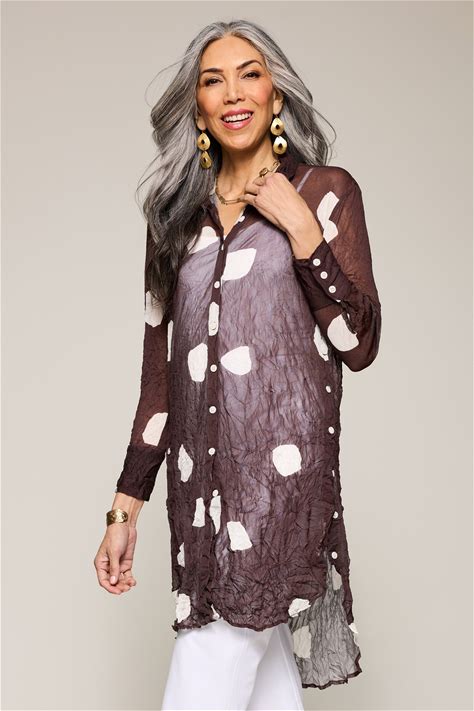 Crushed Mesh Eleanora Tunic - Espresso/Ivory Dot By Lisa Bayne S